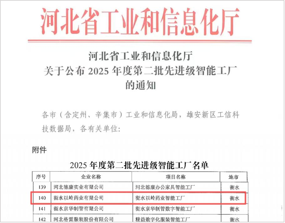 近日,河北省工业和信息化厅公布2025年度第二批先进级智能工厂名单,衡水以岭药业凭借其在中医药生产领域的智能化、数字化创新实践成功入选,标志着其在现代化智能制造转型道路上迈入省级先进梯队。